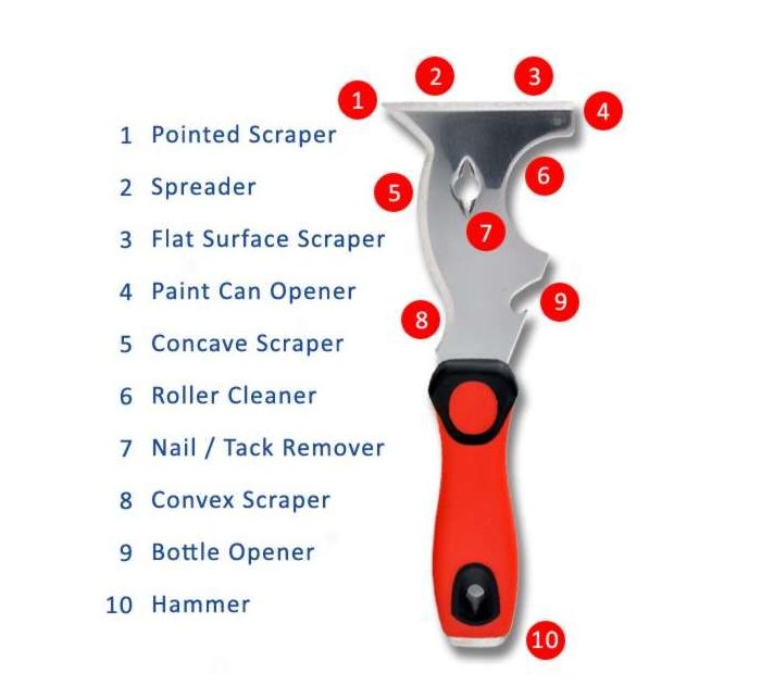 The Xpert Multi purpose chisel knife is a sturdy tool to make light work of a multitude of glazing tasks. The sharp, flat chisel end works well as a deglazing knife, bead remover, surface scraper or spreader. There’s also a pointed, concave or convex scraper which lets you work on curves or angles. In addition, this tool works equally well as a roller cleaner, nail or tack remover, bottle opener, paint can opener and even a hammer thanks to the steel end cap on the handle.