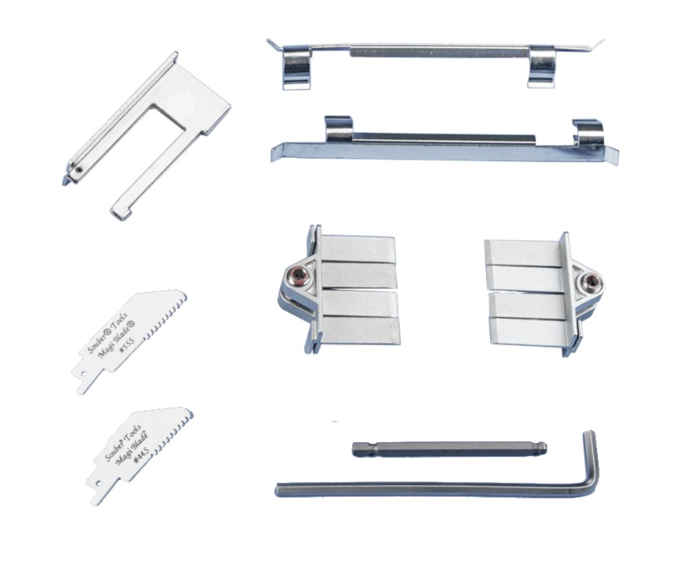 Souber Tools composite door kit to open failed multipoint locks. This basic kit is for release on the inside of inward opening doors, and can also work from the outside for outward opening doors. It requires the use of a 12 volt reciprocating saw with a stroke of 12-16mm only and will not work with standard reciprocating saws that have 30mm strokes. Perfect for dealing with jammed, seized, or damaged multi-point locks; this kit allows safe, controlled, and non-destructive entry.